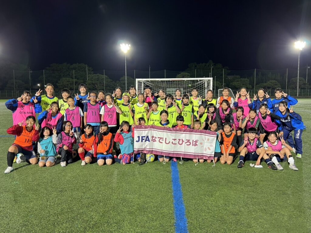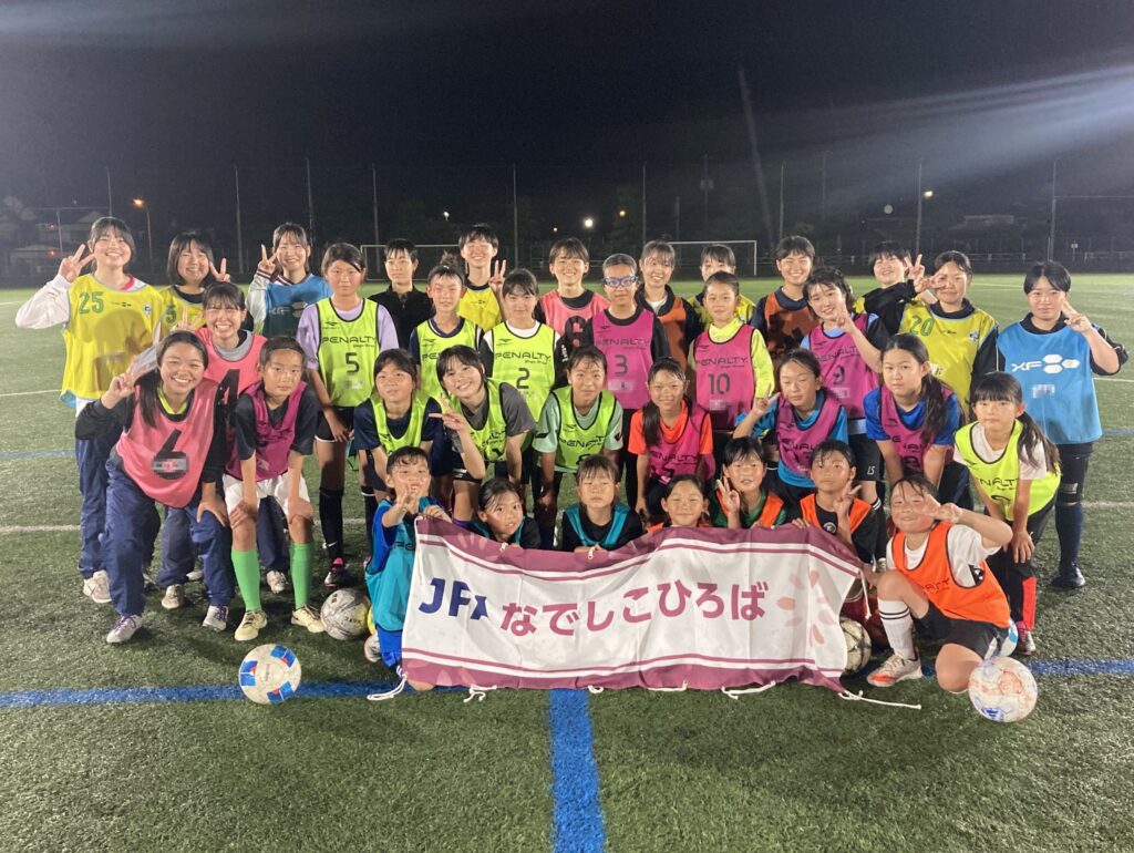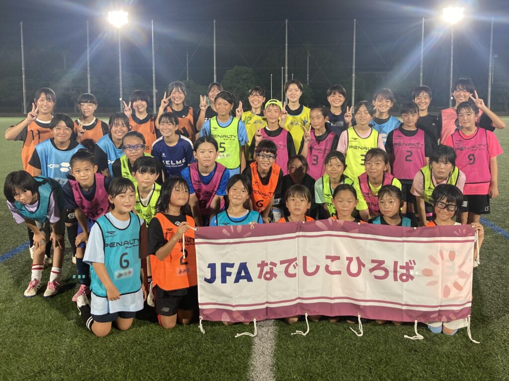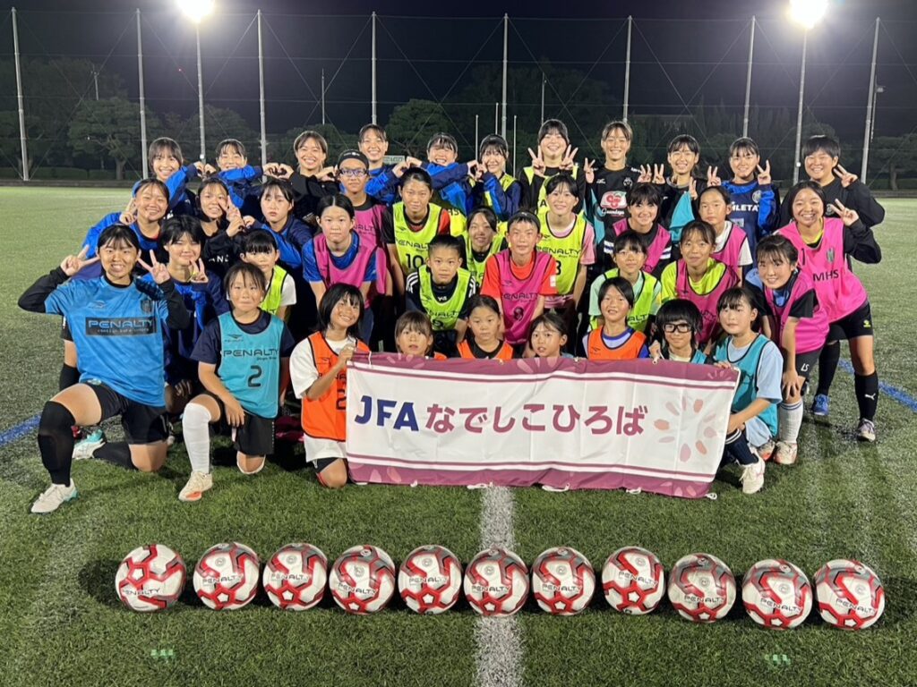 このなでしこひろばでは、サッカー未経験者や初心者も含めた女子選手(小学3年生~中学生)が、サッカーを体験すること、挑戦してみること、また、女子選手だけで行う練習や試合を楽しむことを大切にして実施しています。ぜひ、お友達も誘ってご参加ください。