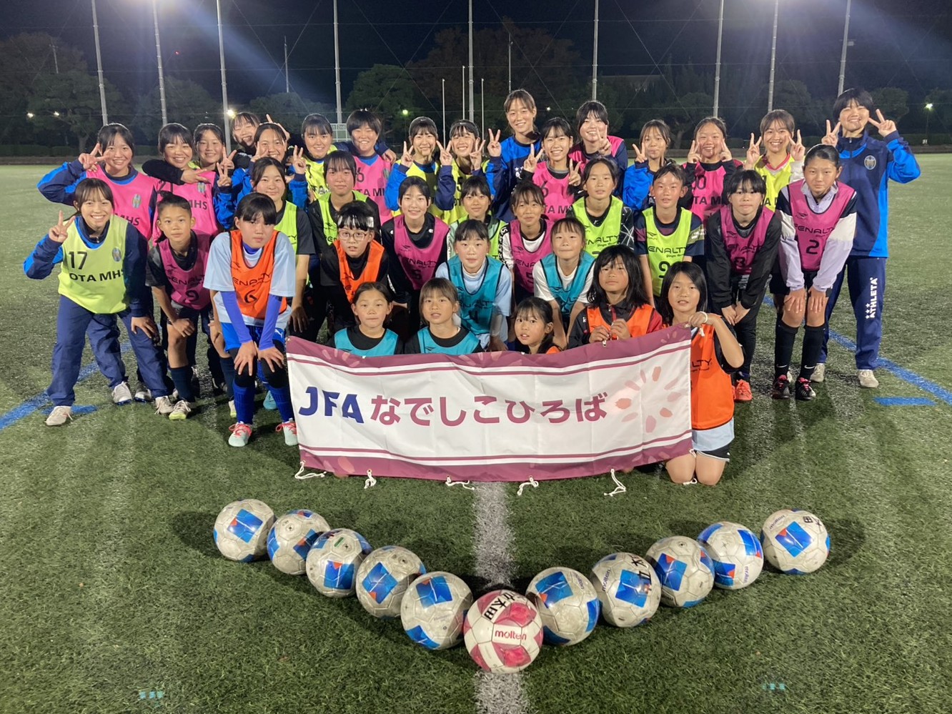 このなでしこひろばでは、サッカー未経験者や初心者も含めた女子選手にサッカーを楽しんでもらいたい、日頃男女合同の環境でプレーしている女子選手に女子だけでプレーする機会を持ちたい、これからも長くサッカーを続けてほしい、という思いで開催しています。