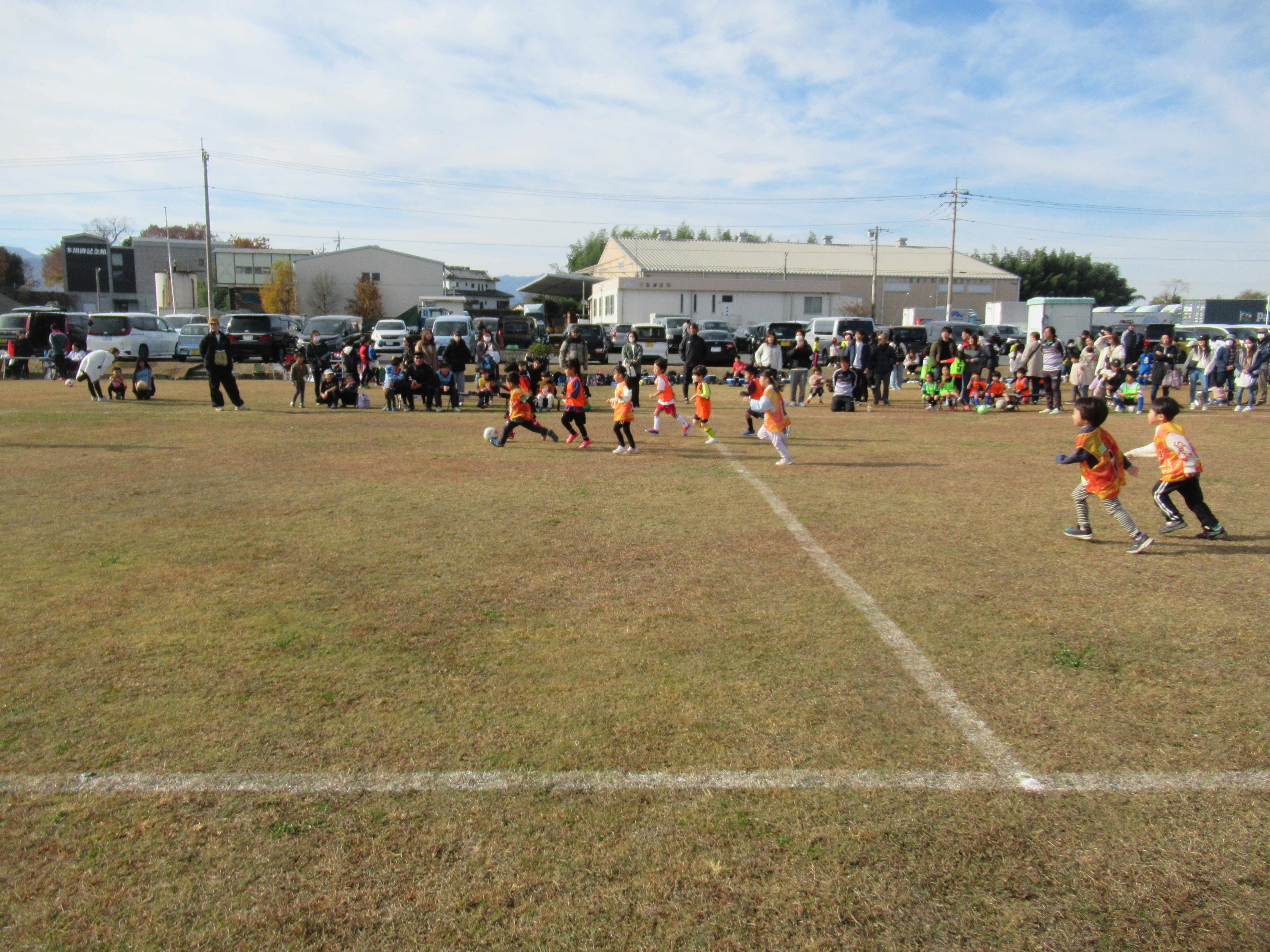 当日は天候にも恵まれ、子どもたちは天然芝のピッチを元気いっぱいに駆け回っていました。